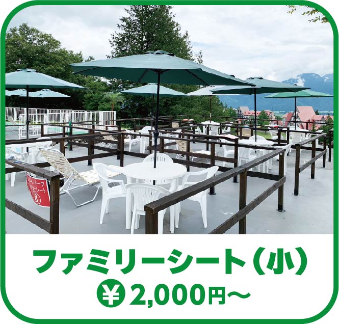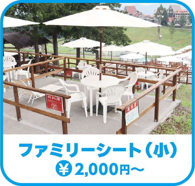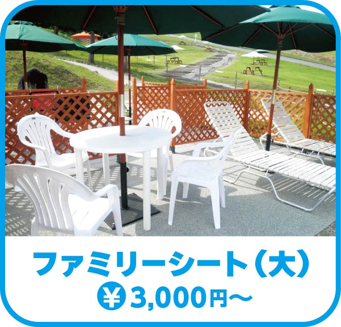 上越国際プレイランドでは、ご家族でゆったりお過ごしいただける有料席をご用意しています。日陰で休憩したり、お子さまを見守りながら快適にお過ごしいただけるスペースです。