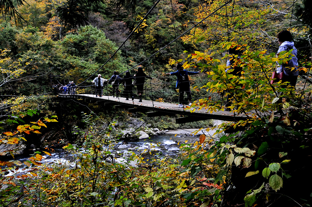 新潟と長野の県境に広がる山あいの集落「秋山郷」。ブナ林に囲まれた渓谷や、紅葉に染まる山並みなど、自然の美しさがそのまま残る秘境です。湯量豊富な温泉や、のどかな里の風景に、心も体も癒されます。(ホテルから車で1時間)