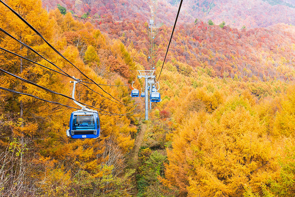 圧巻!日本最長クラスの「ドラゴンドラ」で、空から紅葉を満喫!山を越え、谷を渡るダイナミックなルートはお子さまにも大人気!雄大な自然を眼下に、秋の絶景をゆっくりとお楽しみください。(ホテルから車で55分)
