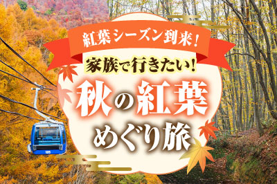 圧巻!日本最長クラスの「ドラゴンドラ」で、空から紅葉を満喫!山を越え、谷を渡るダイナミックなルートはお子さまにも大人気!雄大な自然を眼下に、秋の絶景をゆっくりとお楽しみください。(ホテルから車で55分)