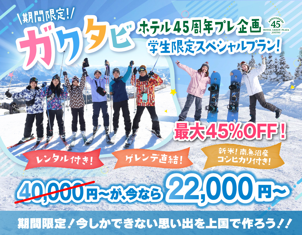 45周年を迎える感謝の気持ちを込めた、学生限定・3月追い込みの特別ガクタビプランです。