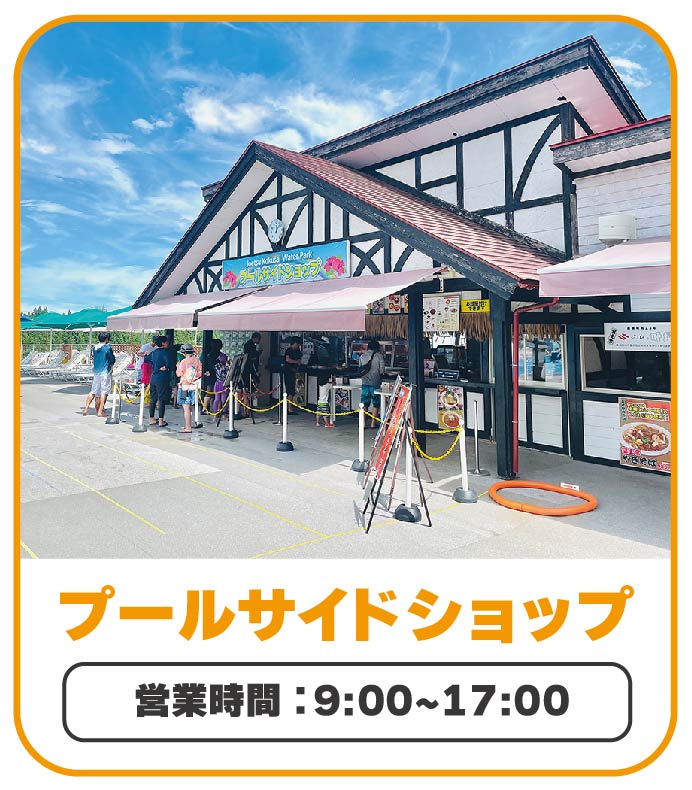 プレイパーク内のレストラン。お子さまから大人まで満足できる洋食メインのメニューをご用意しています。涼しい店内でランチタイムをお楽しみください。テイクアウトメニューもあります。(※水着のままお入りいただけますが、夏期は室温をかなり涼しくしている場合がある為、上着やバスタオル等をご持参ください。)