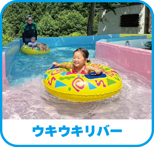毎年大人気のウキウキリバー!水深最大50cmなので3歳のお子さまから楽しめます。自分の浮輪でプカプカ浮いてもよし、バシャバシャ進んでもよし!スライダーが苦手なお子さまにも安心してご利用いただけます。緩やかな水流で小川をのんびり下っていくような気分を、ウキウキ気分でお楽しみください♪