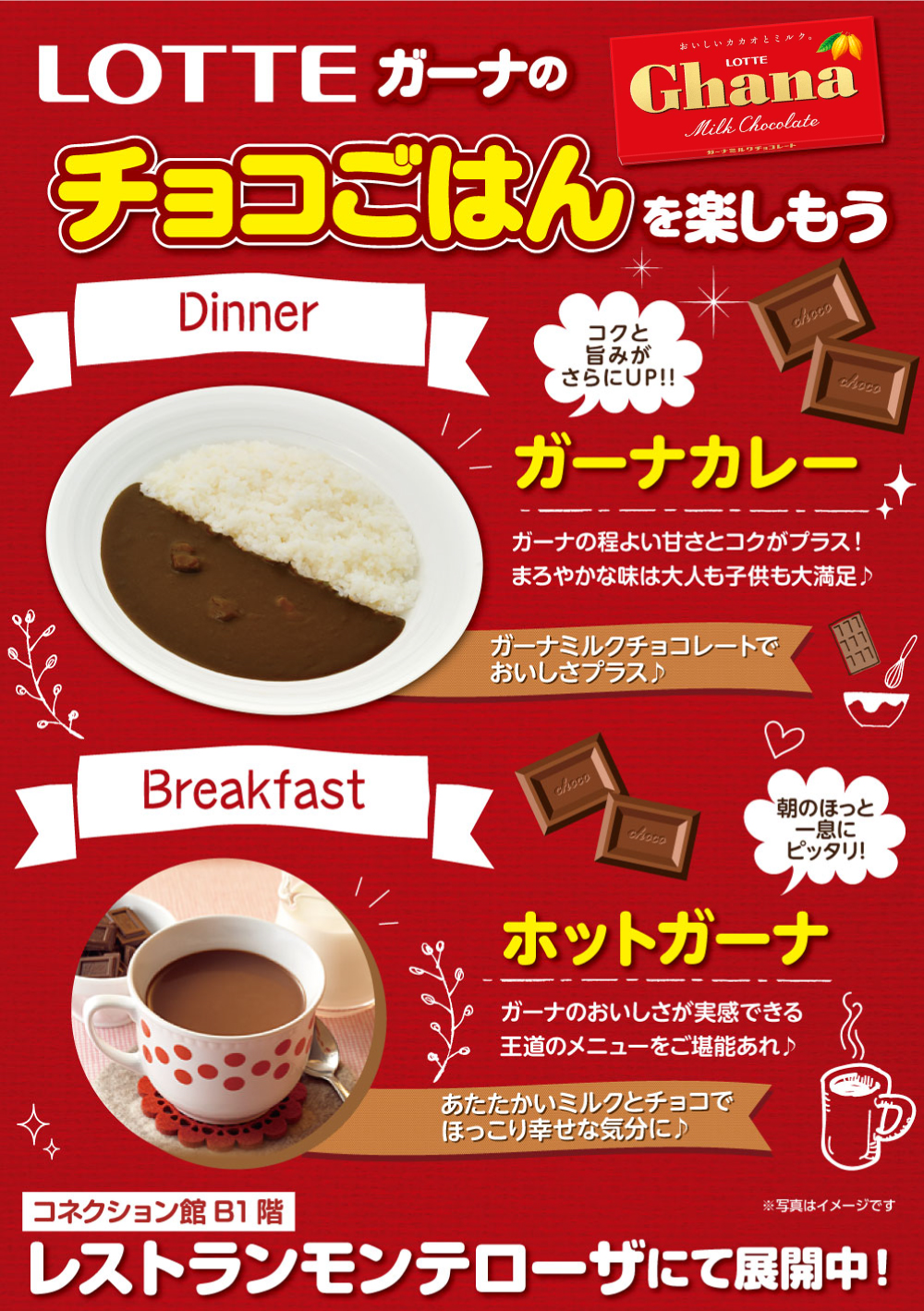お菓子のイメージが強いチョコレートだけど、コクがプラスされたりと調味料としても活躍するガーナミルクチョコレートを使ったレシピでおいしい料理をご提供♪