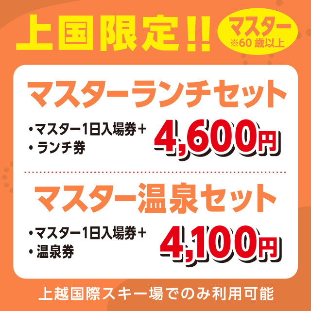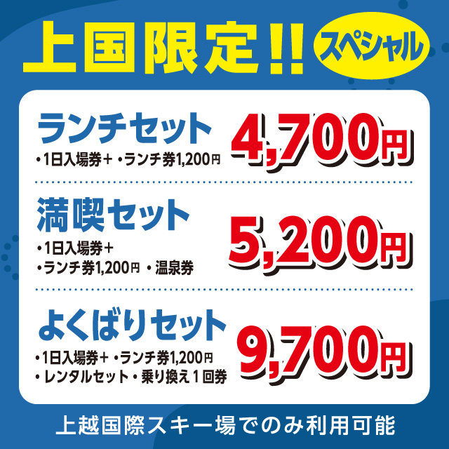 上国&岩原の入場券を買うならシーズン前の早割が断然おトク!時間を気にせずナイターまでたっぷり滑れる入場券+が、大人通常価格5,800円がなんと今なら3,600円!!ジュニア(3歳~小学生)の料金は、今なら1,900円で買えるチャンス♪